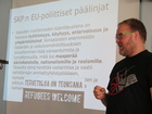 Seminaari Joensuussa kokosi keskustelevaa väkeä kansankahvila Soroppiin sunnuntaina 10.4.2016. Vasemmisto EU ja euro puheenvuoronsa alussa SKP:n puheenjohtaja JP Väisänen näytti kuvia Pariisin Nuit Dubui ”Yökapina” liikkeestä. Se kokoontuu päivittäin Tasavallanaukiolla klo 18 ja keskustelee vilkkaasti politiikan vaihtoehdoista. Liike on leviämässä muihinkin maihin Belgiaan, Saksaan, Espanjaan. Väisänen esitteli Euroopan vasemmiston vaihtoehtoa EU politiikalle. Tavoitteena on itsenäisten valtioiden ja solidaaristen kansalaisten toteuttama muutos koko Euroopassa. On irtaannuttava kurjistamispolitiikasta ja luotava uusi kehityksen malli. Kansallinen itsemäärääminen on vapautettava pankkien vallan alta, toteutettava rauha ja turvallisuus ja vapauduttava Natosta. On luotava rasismista vapaa avoin ja solidaarinen Eurooppa. Väisänen kävi läpi myös Varoufakisin Diem 25 ja Euroopan vasemmiston piirissä syntyneen B suunnitelman, sekä oikeiston piirissä syntyneen A suunnitelman ja Paavo Väyrysen suunnitelman. Hän viittasi myös EU:n viiden johtajan liittovaltiosuunnitelmaan. Vaatimus eurosta irtaantumisesta ei riitä, se on oikeiston retoriikkaa. Vasemmisto tarvitsee politiikassa luokkaperspektiivin. SKP on liittovaltiota vastaan, tavoitteena on EU sopimusten purkaminen, toisenlainen Eurooppa, työväen Eurooppa. Siihen voidaan päästä kansalaisten, ayliikkeiden, kansalaisliikkeiden toiminnalla. Kamppailu lähidemokratiasta voi olla alkuna uudelle poliittiselle järjestelmälle, jossa on uudenlaiset taloudelliset ja sosiaaliset suhteet. Kommenttipuheenvuoroja Avustaja Tommi Heino (sdp) totesi kommenttipuheenvuorossaan, ettei EU ole onnistunut tavoitteissaan, vaan markkinavetoisuus on edennyt hyvinvointivaltion kustannuksella. Sosiaalidemokraatit pyrkivät EU:ssa demokraattisten rakenteiden vahvistamiseen ja parlamentin vallan lisäämiseen ja lisää eurooppalaisuutta. Oikeisto ajaa kurjistamispolitiikkaa, sosiaalidemokraatit parempaa politiikkaa. Massatyöttömyyden vähentämiseksi tarvitaan elvytystä, se yhdistää erilaisia vasemmiston voimia Euroopassa, Heino painotti. Kaupunginvaltuutettu Marko Haakanan (vas) mukaan EU ja euro vaatisivat suuren korjausliikkeen. Nyt finanssikapitalismi jyrää, ympäristökriisi tuhoaa yhteiskuntia. Tarvitaan yhteinen liike, vaikka DIEM 25 ihmisten ja hyvinvointivaltion puolesta. Eurooppaan tarvitaan yhteistyötä kilpailun sijaan. Velkaantuminen vie valtioiden sisällä leikkauspolitiikkaan. Vasemmiston voiman kasvattaminen on välttämätöntä ongelmien ratkaisemiseksi. Yllättävän ajankohtaista on tutustua Pentti Haanpään ajatuksiin, Haakana lopetti. Lehtori Jouko Jokisalo ItäSuomem yliopistolta totesi kommentissaan, että vaatimukset EU sopimusten purkamisesta ja työväen Euroopasta ovat hyviä. Mutta missä ovat voimat niiden toteuttamiseksi? Itävallassa oikeistoradikaalit ovat suurin puolue, Ranskassa ja Saksassa äärioikeisto nousee. Saksan osavaltiovaaleissa demareiden kannatus puolittui, oikeistoradikaalit saivat viisin jopa kymmenkertaisen kannatuksen kuin vasemmistopuolue Linke. Saksassa on ollut jatkuva rasistien mobilisaatio kaduilla, kaksi mielenosoitusta keskimäärin joka viikko. Äärioikeisto vaatii suoraa kansanvaltaa, eurosta eroon ja EU:sta itsenäisten kansakuntien liittoa. Suomessa vasemmisto on vajonnut pelkäksi vaalipuolueeksi. Missä ovat muutosvoimat, Jokisalo kyseli. Kuinka politiikan käytäntö ja suunta muuttuu? Mitä SKP tarjoaa keskusteluun? Opiskelijaaktiivi Toni Kallioinen totesi puheenvuorossaan, että porvarillinen hegemonia on murrettava. Siinä tarkoituksessa on otettava omat termit käyttöön. On alettava puhua marxilaisesti, käsite työväenluokka käyttöön. Keskustelussa demokratiasta on päästävä määrittämään mistä päätetään. Tarvitaan demokratiaa ihmisille. Muutos tapahtuu joukkoliikkeiden avulla. Liikkeelle on sovittava yhteiset tavoitteet. On sovittava myös keiden kanssa ei olla yhteistyössä, rasistit on eristettävä. Siten joukkoliike voi edetä ja saada lisää kannatusta. Joukkoliikkeellä voidaan osoittaa, ettemme hyväksy harjoitettua politiikkaa. Ayliikettä voidaan radikalisoida siihen osallistumalla, saada esimerkiksi poliittisia lakkoja aikaan. Politiikan suunnan muuttamiseksi tarvitaan koko ajan julkista toimintaa, Kallioinen vakuutti. Kommentti Kansalaisaktiivi Jussi Leinonen kertoi oman kommenttinsa aluksi kiinnostuneensa uudelleen politiikasta tultuaan Joukkovoimaan mukaan. Hänen mukaansa Joukkovoimassa on jotain työväenliikkeen alkujuurista. Leinonen kyseli, mihin porvarillinen hegemonia perustuu. Mistä johtuu, ettei vielä ole suurta liikettä? Hänen mukaansa tavalliset ayliikkeen jäsenet on saatu uskomaan, että leikkauspolitiikka on välttämätöntä. Rasismin vastustamiseksi ei arvoliberalismi riitä, tarvitaan vasemmistolainen vaihtoehto. Veroparatiisien lopettamisen ja pääomaveron korottamisen vaatiminen ei riitä. Arkitajunnassa näyttää, että olemme riippuvaisin sijoittajista ja kapitalistienkin toiminta, riisto on oikeutettua. Ayliikkeen muutos nousee alhaalta päin. Marx totesi, että ”kapitalismi perustuu työläisten kilpailuun”. Nollatuntisopimukset lisäävät kilpailua. Sen vuoksi Vakiduunin kampanja on hyvä, koska se on lisäännyt myös yhteistyötä eri liittojen välillä ruohonjuuritasolla. Sitäkin olen miettinyt, onko oikeistopolitiikan kiristyminen merkki järjestelmän kriisiytymisestä. Politiikan suunnan muutos vaatii väestön valtaenemmistön heräämistä, ihmisten omaa toimintaa, Leinonen painotti. Raportin kokosi Hannu Ketoharju |